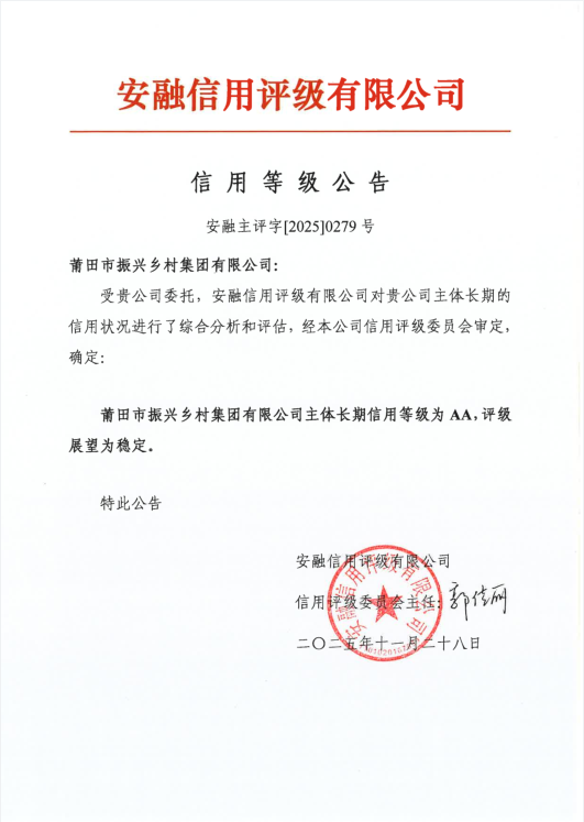 近年來,振興集團(tuán)深入貫徹木蘭集團(tuán)的戰(zhàn)略部署,治理打造莆田市三農(nóng)與海洋發(fā)展、產(chǎn)業(yè)數(shù)智化轉(zhuǎn)型的基礎(chǔ)建設(shè)平臺(tái)。近日,經(jīng)國內(nèi)權(quán)威信用評級(jí)機(jī)構(gòu)安融信用評級(jí)有限公司嚴(yán)格評估,振興集團(tuán)成功獲得“AA”主體信用評級(jí),彰顯了資本市場對振興集團(tuán)的高度認(rèn)可,是對振興集團(tuán)綜合實(shí)力的充分肯定。